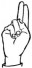 На ћирилици написано ДАРИЈА МЕДАН састоји се из 11 слова [?]. Исписано ћириличном једноручном азбуком за глувонеме: